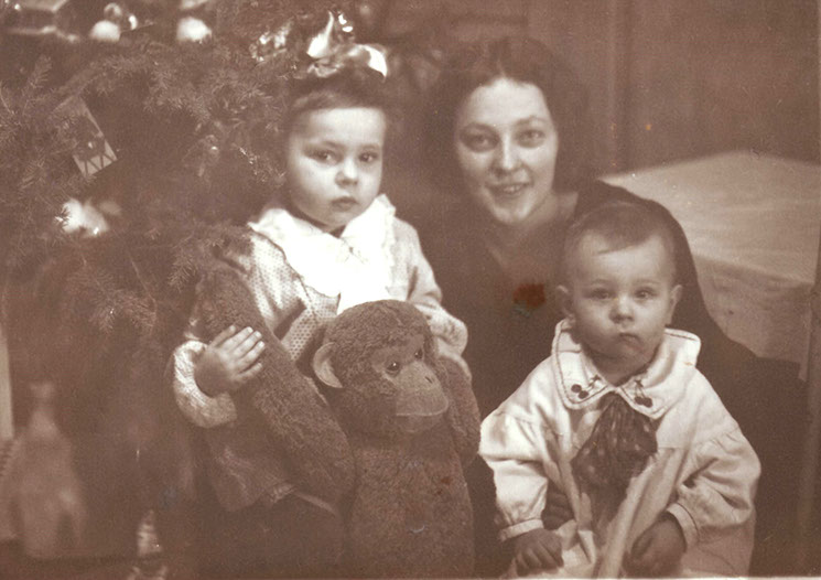 А здесь Ида с детьми у огромной сибирской ёлки, украшенной игрушками, готовятся встретить новый, 1941 год.