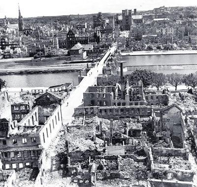 16 марта 1945 года за 20 минут налёта британских самолётов город «ста церквей» был практически разрушен, в огненном вале погибло более 5000 человек. Масштаб трагедии был таким, что высказывалось мнение город не восстанавливать, а построить рядом новый.