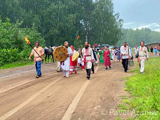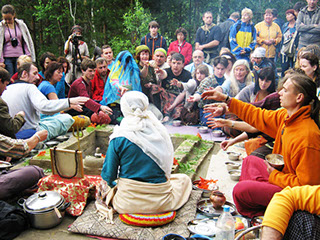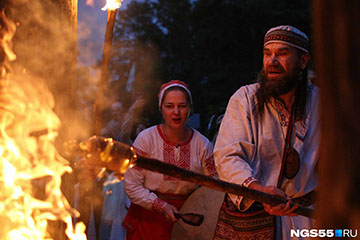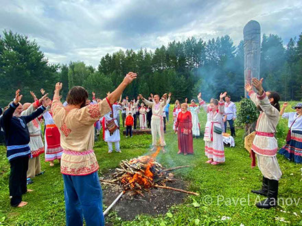 У жертвенника на «месте силы» Празднование дня летнего солнцестояния Идут к кострищу
