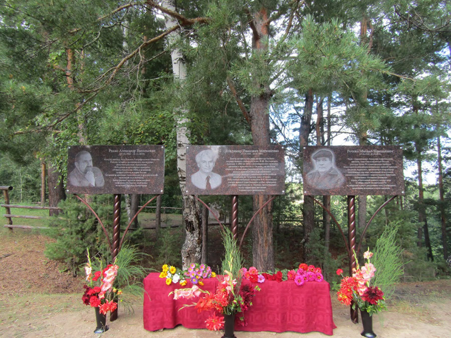 Панорама там действительно впечатляющая, но ещё можно увидеть и памятные доски, установленные в честь трёх человек, которые со своими помощниками проводили здесь научные археологические раскопки. Это, наряду с уже упомянутым мной писателем Михаилом Николаевичем Речкиным, профессор Омского государственного университета им. Ф. М. Достоевского Владимир Иванович Матющенко и директор Петропавловской средней школы Муромцевского района Александр Витальевич Рахно.