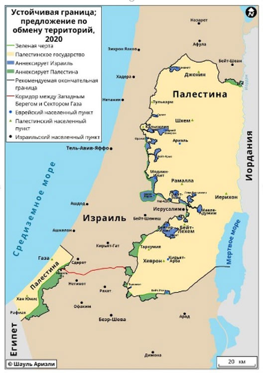 В случае создания Палестинского государства в границах начала шестидневной войны, руководство которого будет враждебно Израилю, а нынешнего «президента» Абу Мазена сменит какой-то молодой и агрессивный руководитель вроде Яхьи Синвара, мечтающий об уничтожении еврейского государства, обладание территорией Иудеей и Самарией обеспечит его армии стратегическую глубину и преимущество. В этом случае Израиль не может реализовать план обороны на случай военного вторжения в его пределы. Расстояние между так называемой «зеленой чертой» или линией прекращения огня 1948 года и Средиземным морем колеблется от 18 км в районе Тель-Авива до 14 км в районе Нетании. «Зеленая черта» пересекает страну с севера на юг, поворачивает на восток, рассекает Латрун и уходит резко на запад. Здесь в этой узкой полосе, сосредоточено около 70% населения Израиля, здесь нет места для манёвров и нельзя вести оборонительные бои. Война, которая начнётся в самом уязвимом месте страны - в пределах зеленой черты, всего в 2 км от Кфар-Сабы, будет происходить в населённых пунктах и, несомненно, приведёт к гибели тысяч израильских гражданских лиц, в независимости от того, на чьей стороне будет победа. Любое вторжение врага внутрь зеленой черты немедленно приведёт к рассечению страны и отрыву вооружённых сил от их баз снабжения и производства оборудования, техники и прочего необходимого. Первое шоссе, основная артерия Израиля, соединяя два главных города — Тель-Авив и Иерусалим, — пересекает «Зеленую черту» в районе Латруна. Достаточно боевикам ПА заполнить в этом месте своими машинами шоссе, чтобы парализовать израильскую армию.