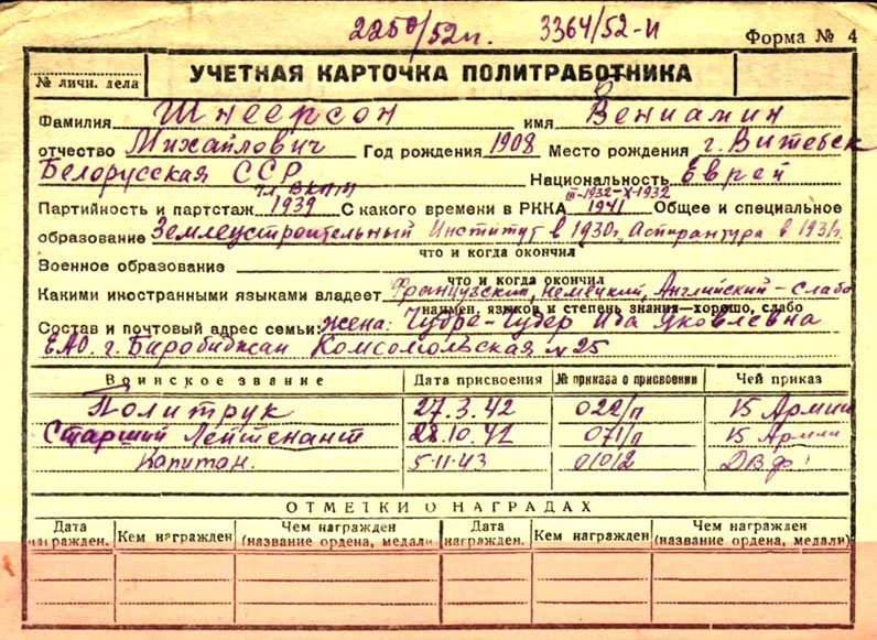Учетная карточка политработника