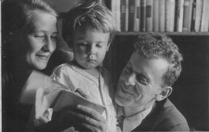 Григорий Шнеерсон с женой Евгенией и сыном Мишей, 1943 г