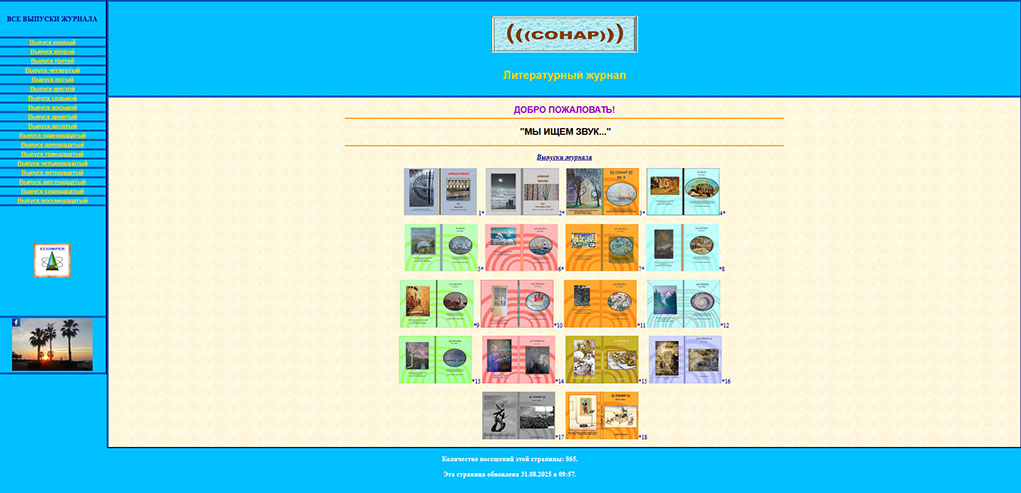 Литературно-публицистический журнал "Сонар" состоит в Союзе русскоязычных писателей Израиля (СРПИ). Сотрудничество портала "Круг интересов" с журналом "Сонар" установилось в 2022 году через совместное участие в проекте ZoomWorld и продолжилось в 2023 году публикацией в 8-м номере Сонара сборника "Байки" (автор Э. Ковалерчук), а затем публикацией на портале "Круг интересов" статей постоянного автора Сонара Александра Вильшанского "Одни ли мы на этой планете" (13.01.25.) и "Проблема добра и зла" (15.02.25.). Планируются также дальнейшие взаимные публикации и взаимное же информирование читателей о новых выпусках журнала и новых публикациях на портале.